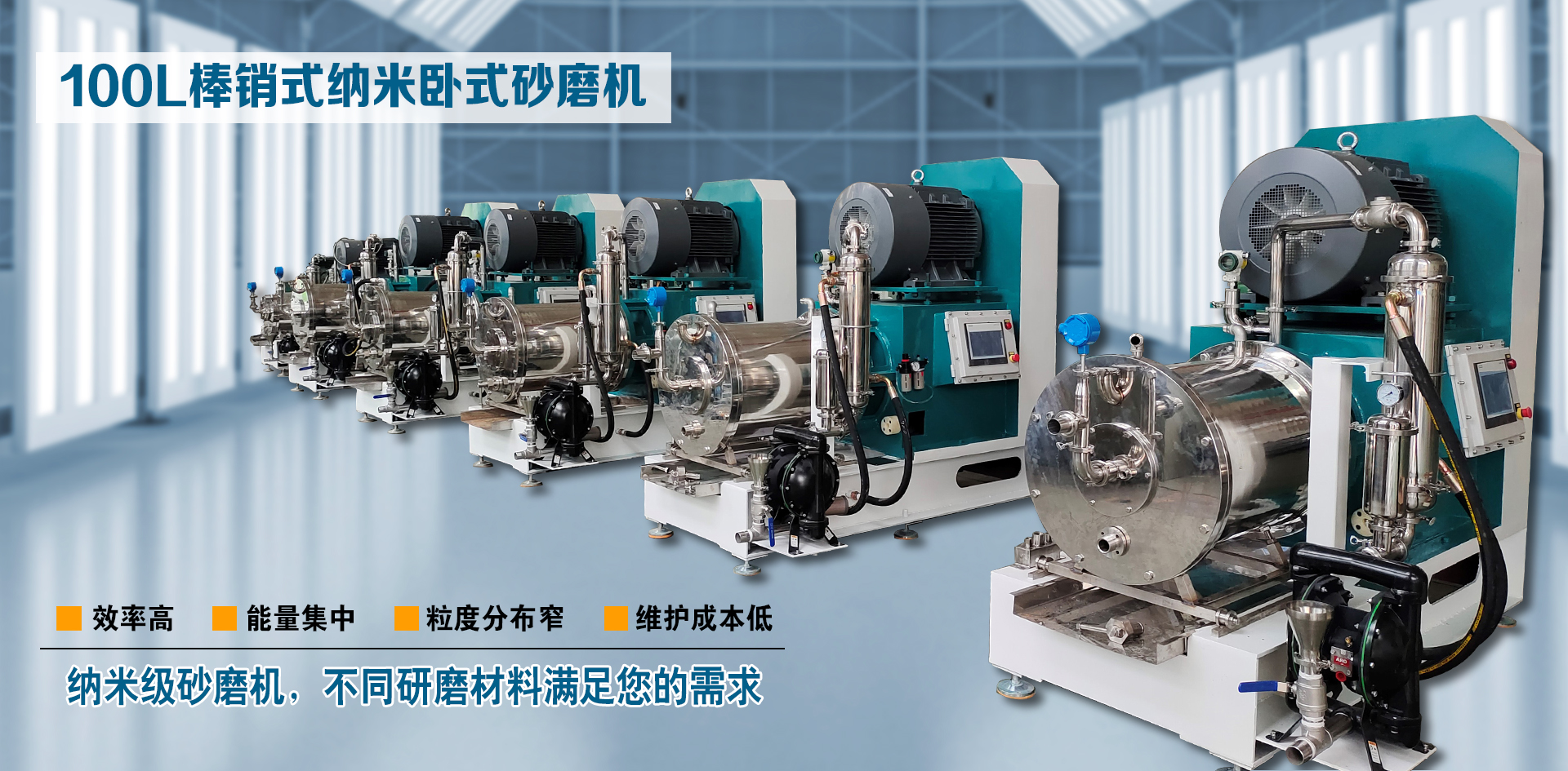 工業級棒銷動態砂磨機廣泛應用于微米級亞微米級、納米級的中高粘度物料的研磨,動靜環間隙出料,棒銷轉子結構滿足不同尺寸、不同研磨細度以及不同研磨工藝的生產需求 臥式砂磨機,適用于對研磨精度要求高的化工物料,連續封閉式高效率濕式研磨分散。 輸送泵有氣動隔膜泵和圓弧泵、刮板泵研磨介質為氧化錯珠,根據物料及細度要求選擇介質大小